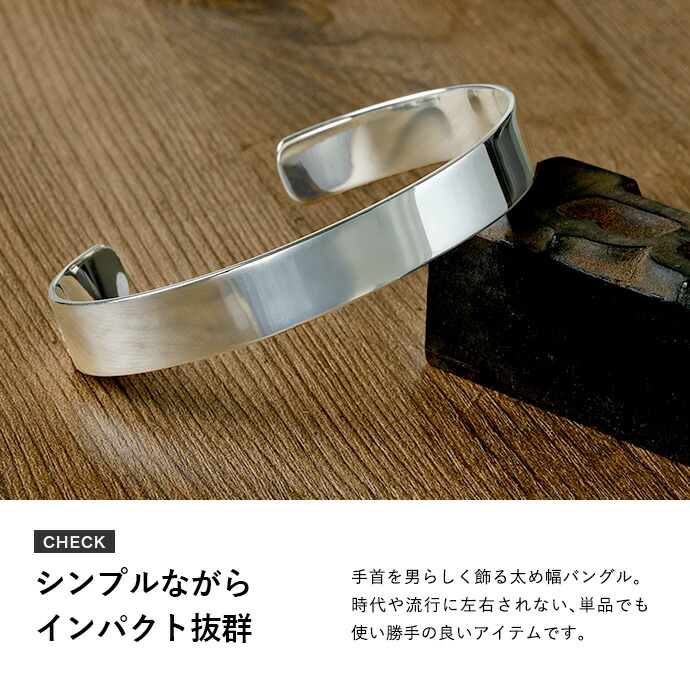 ブレスレット メンズ シルバー925 10mm 平打ち バングル 太め プレーン 定番 シンプル シルバーブレスレット アクセサリー 人気 おしゃれ 20代 30代 40代 50代