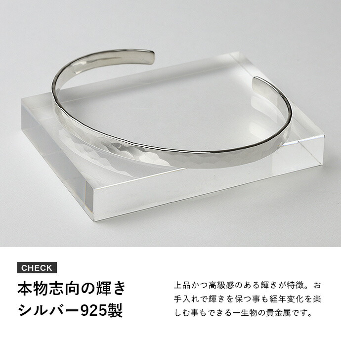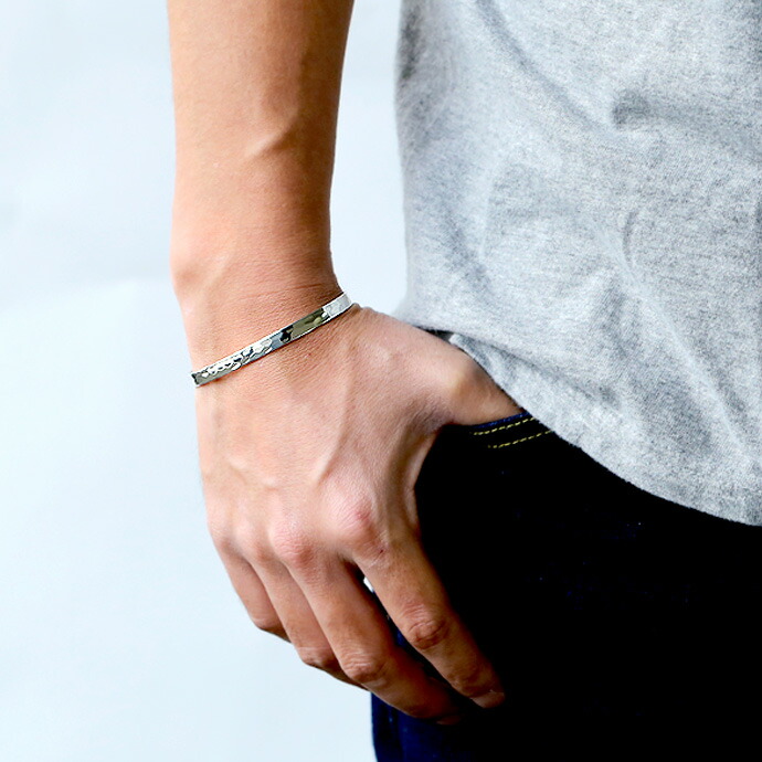 ブレスレット メンズ シルバー925 槌目 平打ち バングル 5mm プレーン 定番 シンプル シルバーブレスレット アクセサリー 人気 おしゃれ 20代 30代 40代 50代