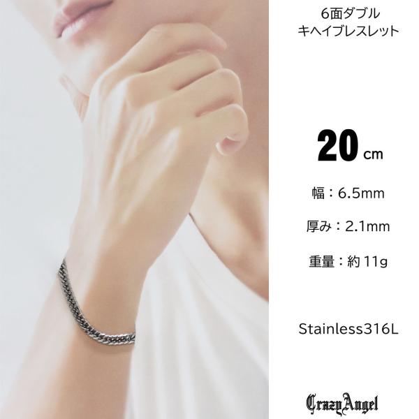 喜平 ブレスレット メンズ 20cm メンズブレスレット シルバー ステンレス チェーンブレスレット ステンレスブレスレット 6面ダブル