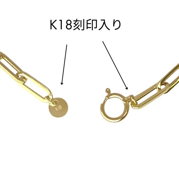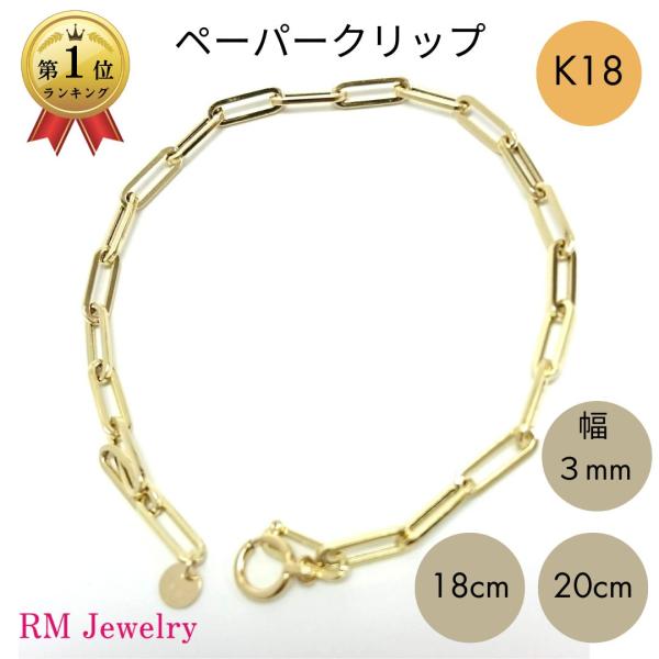 18金 ペーパークリップ チェーン ブレスレット 幅3mm 18cm 20cm K18 YG 角アズキ 中空 リンク メンズ RMジュエリー