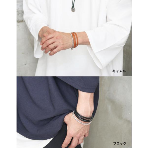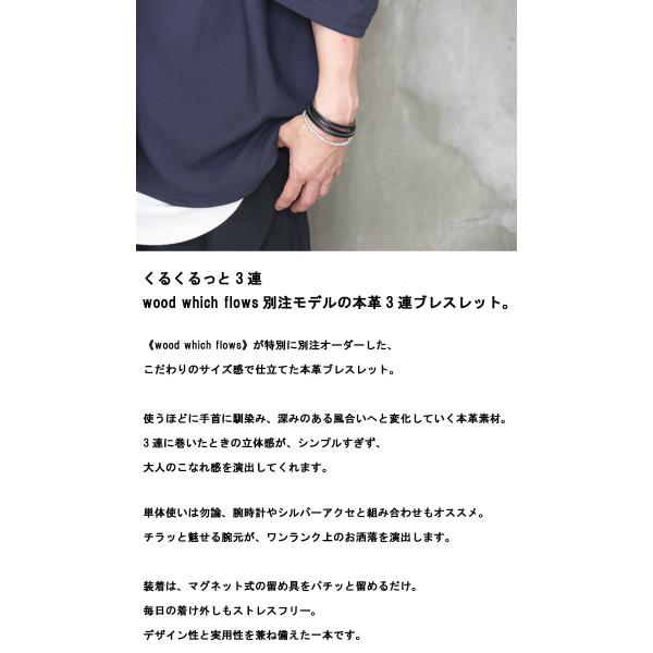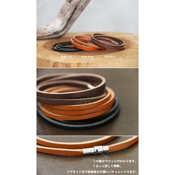 レザーブレスレット 3連 本革ブレスレット [M便 1/1] ブレスレット 本皮 革 レザー 腕輪 革小物 ブラック 黒 キャメル ブラウン アクセサリー メンズ
