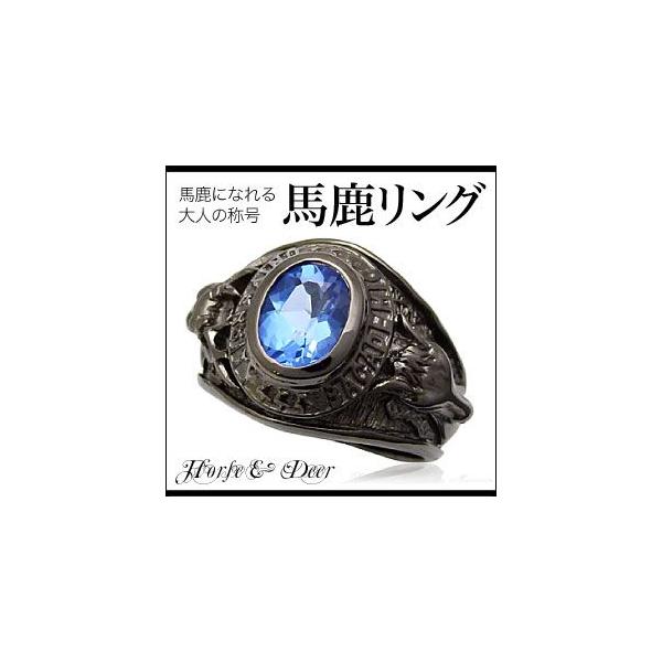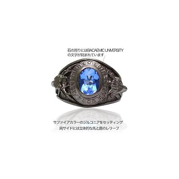 シルバーアクセサリー メンズ リング・指輪 バカ・馬鹿 大学 カレッジリング 馬 ホース 鹿 ジルコニア bssri0018