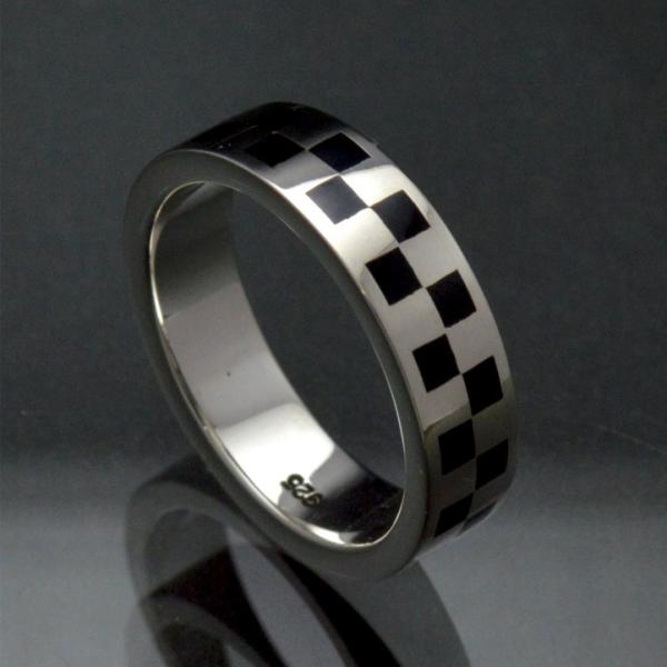 市松模様、チェッカーリング シルバー925 銀製(シンプル 平打ち 指輪 チェック 和柄 銀)