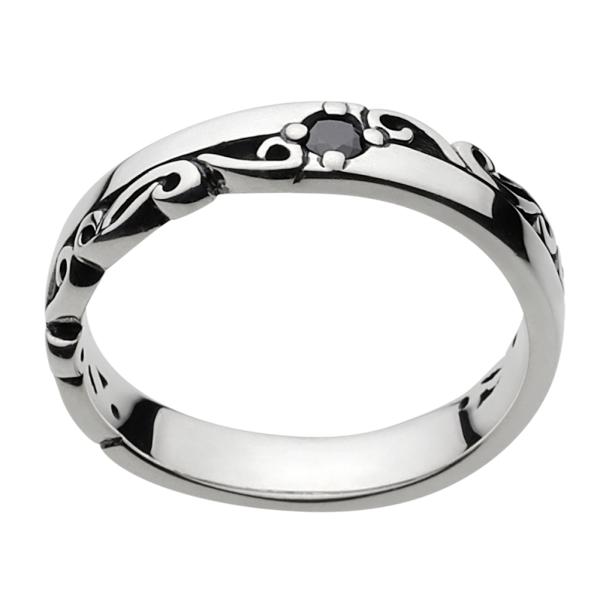 ブラックジルコニア シルバーリング 指輪 メンズ アラベスク 唐草 細い 細身 黒 石 シルバー925 リング レディース 大きいサイズ シルバーアクセサリー fr0280
