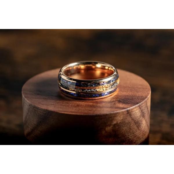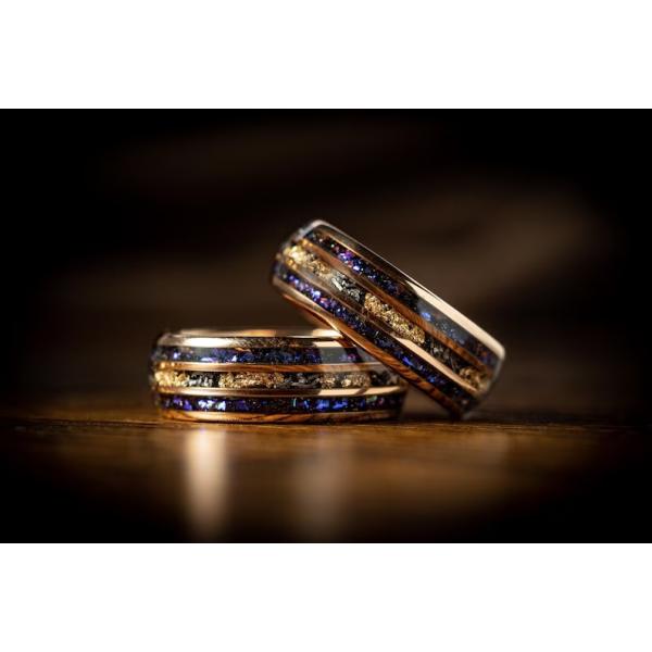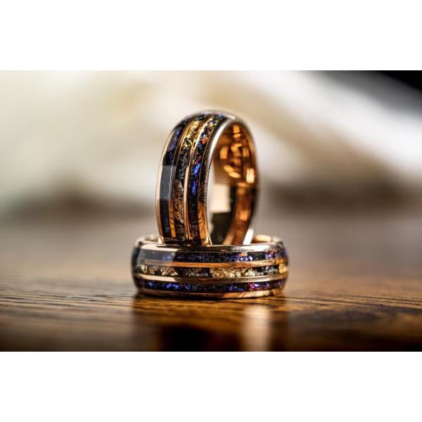 8mm メンズ リング 宇宙風 ゴールド箔入り ブラック ミッドナイト タングステン風 ステンレス指輪 ギャラクシーデザイン