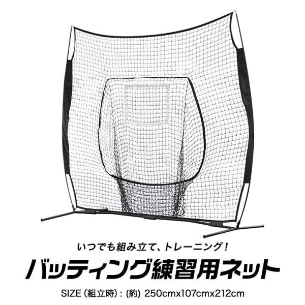 バッティングネット 野球 練習 大型 2.5m 250cm×212cm 自宅 庭 おすすめ 組み立て式 ソフトボール 投球練習 打撃練習 FIELDOOR 送料無料