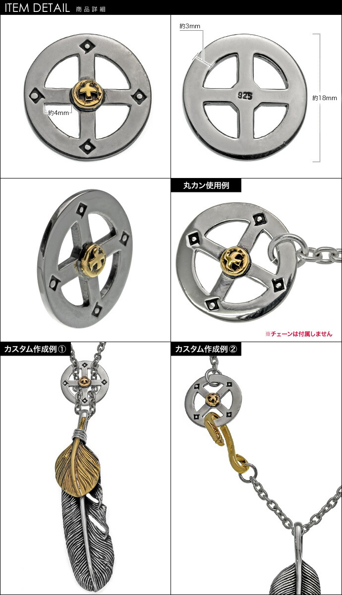 ネックレス メンズ シルバー925 メディスンホイール パーツ チェーン 真鍮 インディアンジュエリー イーグル 鷹 鷲 カスタムパーツ カスタマイズ 丸カン付き