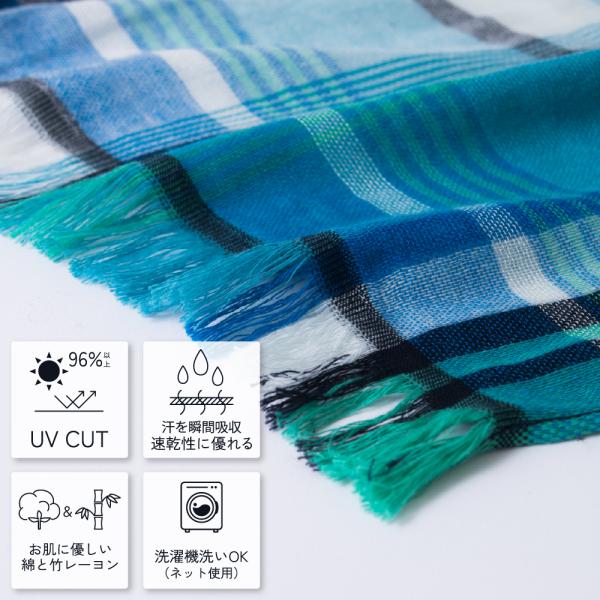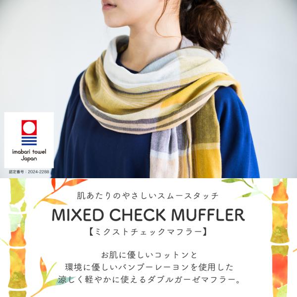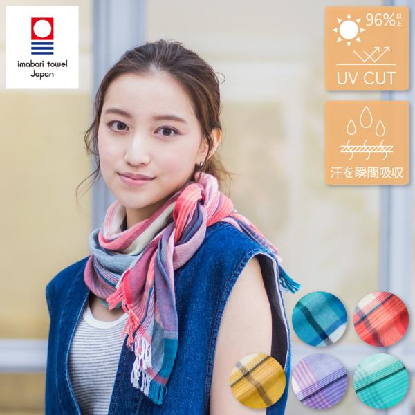 今治 ストール ミストチェックマフラー 日本製 UVカット 綿 コットン バンブーレーヨン ガーゼストール 薄手 春 夏 マフラー 洗濯可 速乾 ウォッシャブル オリム