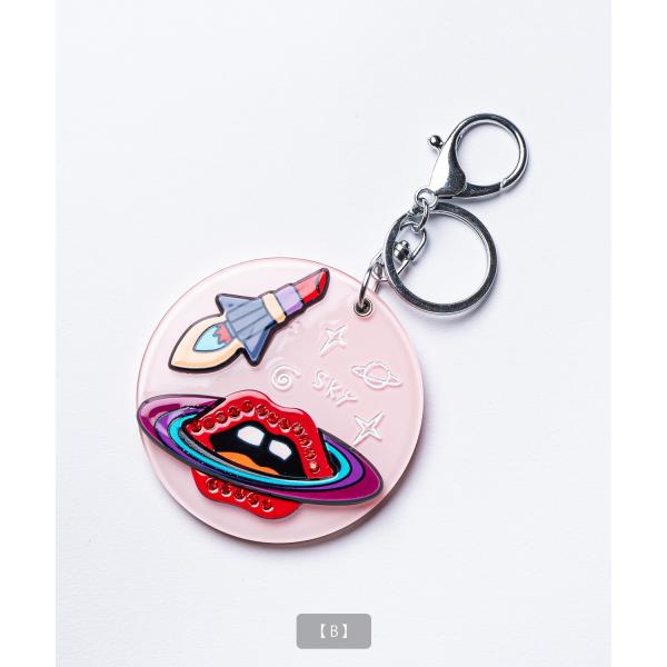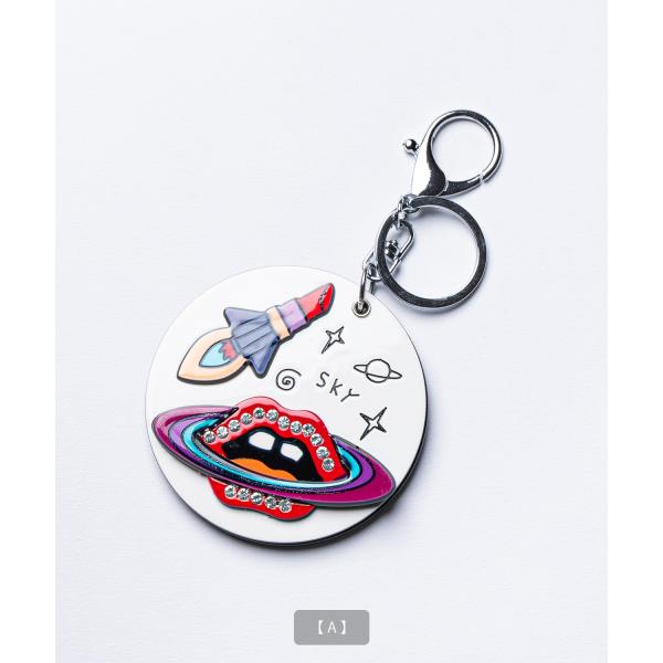 ミラーキーホルダー 鏡 コンパクト スライド アクリル キーリング チャーム 唇 ポップコーン 香水 宇宙 Y2K ストリート ポップ 雑貨 ギフト