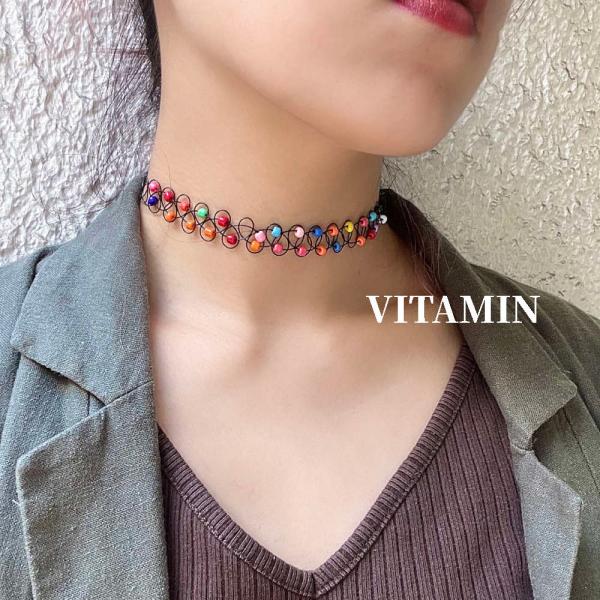 そっとの延ばして着けるだけ。ビーズでアクセントをつけたチョーカー カラフル ネックレス レディース アクセサリー シンプル かわいい ダンス 華奢