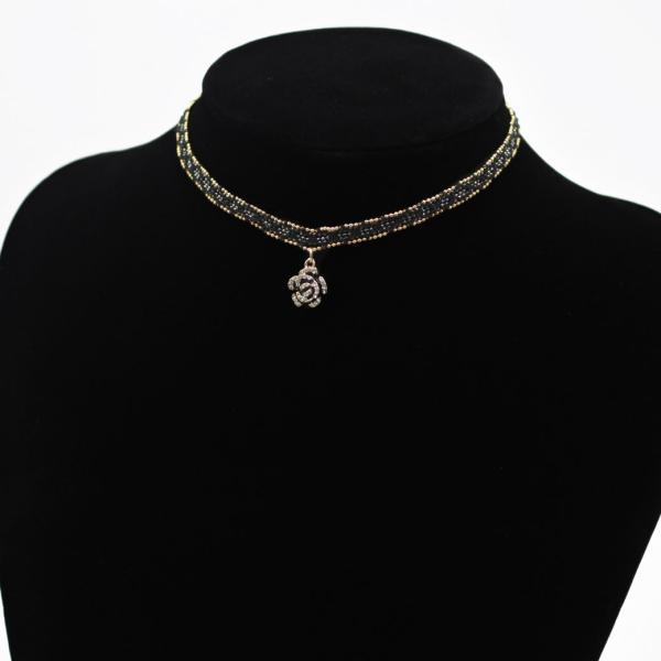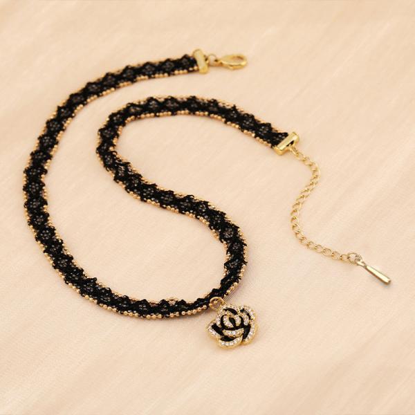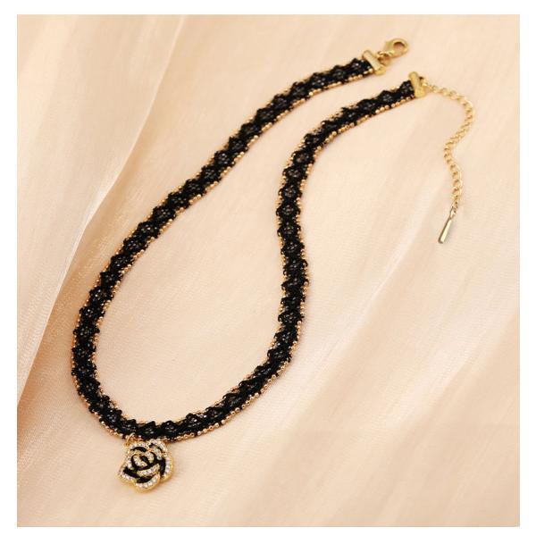 チョーカー ビーズ ショートネックレス レディース ゴールド ブラック 花 フラワー 韓国アクセ 大人 おしゃれ