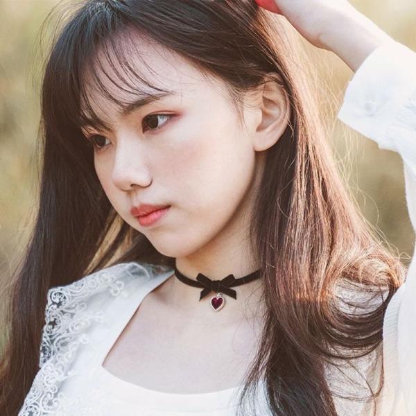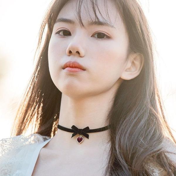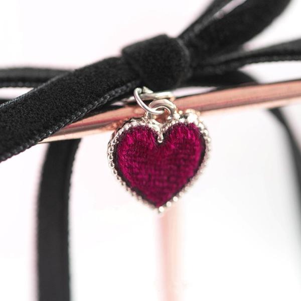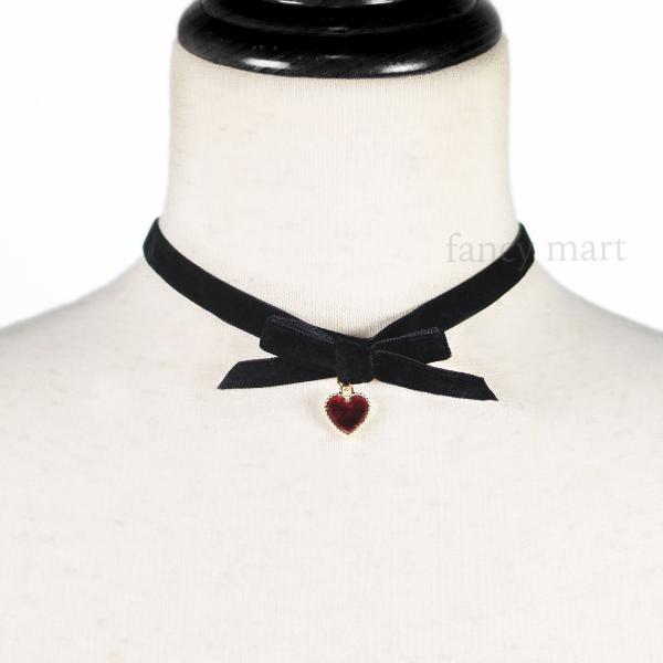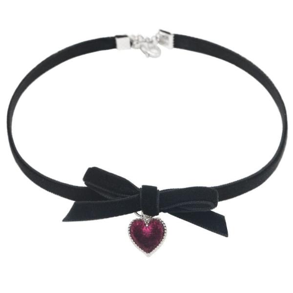 チョーカー ショートネックレス レディース ハート チャーム リボン 紫 ブラック 首飾り 韓国アクセ 大人 おしゃれ