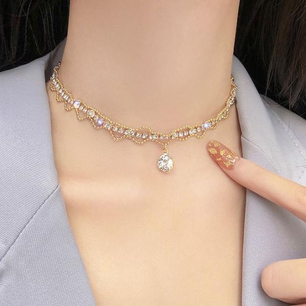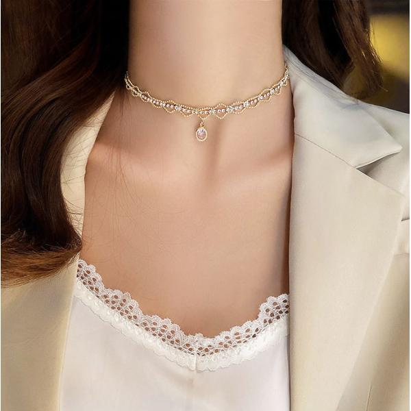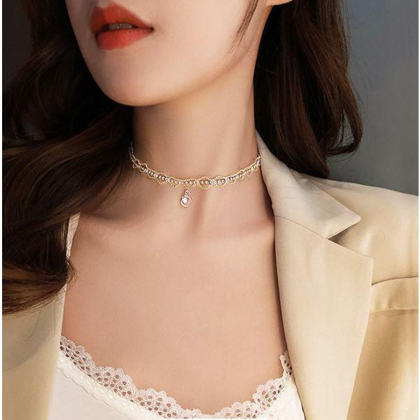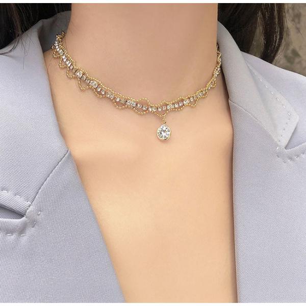 レディース チョーカー ビーズ ショートネックレス ゴールド ビーズ 宝石 ジルコニア 石 韓国アクセ 大人 おしゃれ