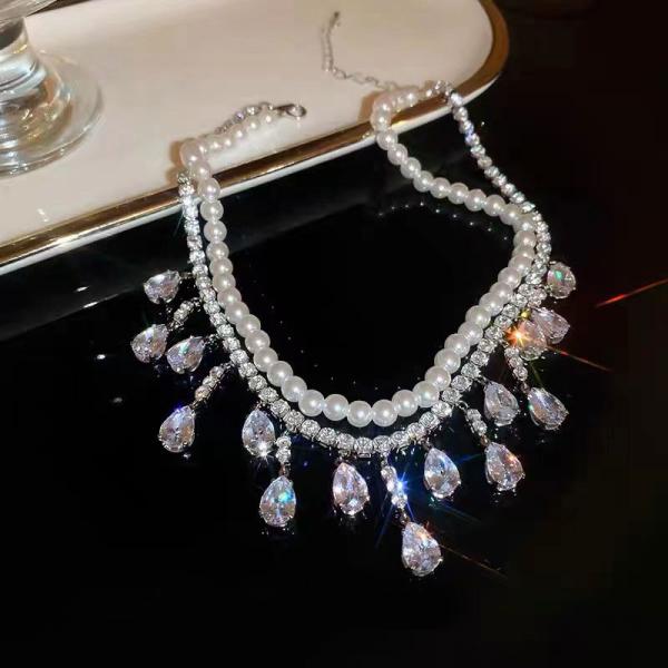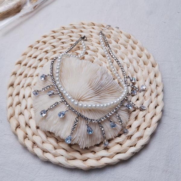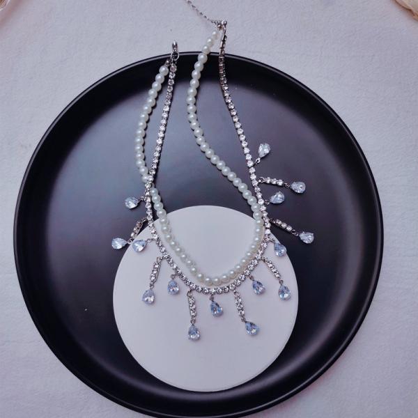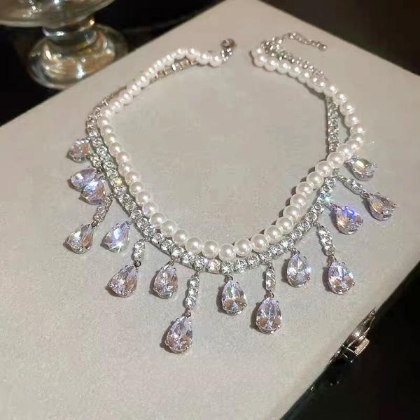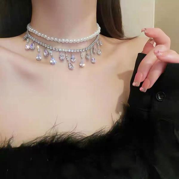 レディース チョーカー ショート ネックレス ペンダント 人工 パール 真珠 クリスタル 宝石 水晶 大人 首飾り パーティー 装飾 鎖骨 可愛い