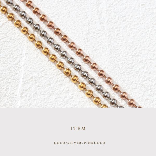 50%OFFセール ネックレス レディース ステンレス ネックレス (123) ボールチェーン 選択可 (銀色 金色 ピンクゴールド) シルバー ゴールド