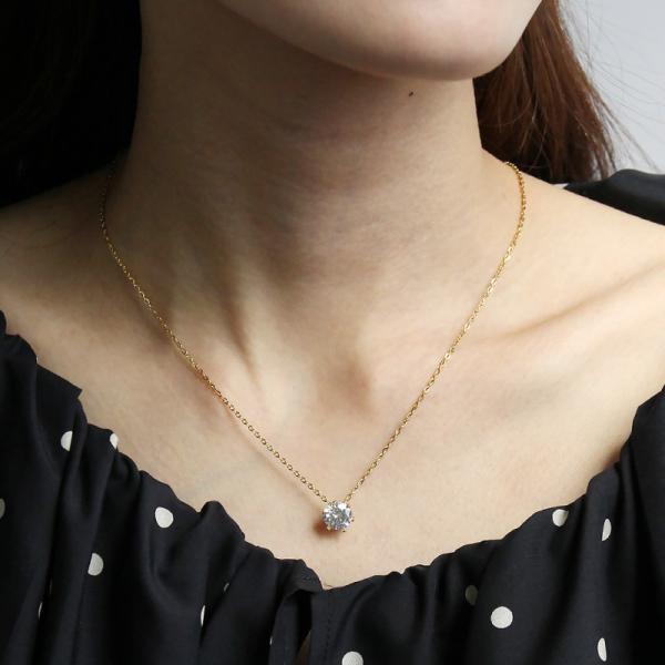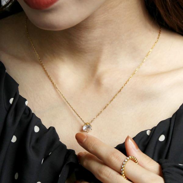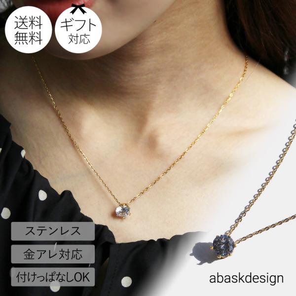 金属アレルギー対応 ネックレス シンプル レディース 20代 30代 40代 50代 サージカルステンレス 一粒キュービックジルコニア 47.2cm 6本爪 ギフト