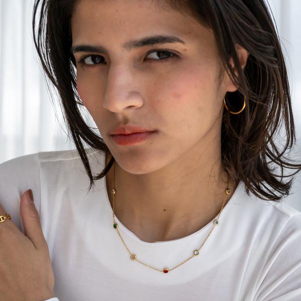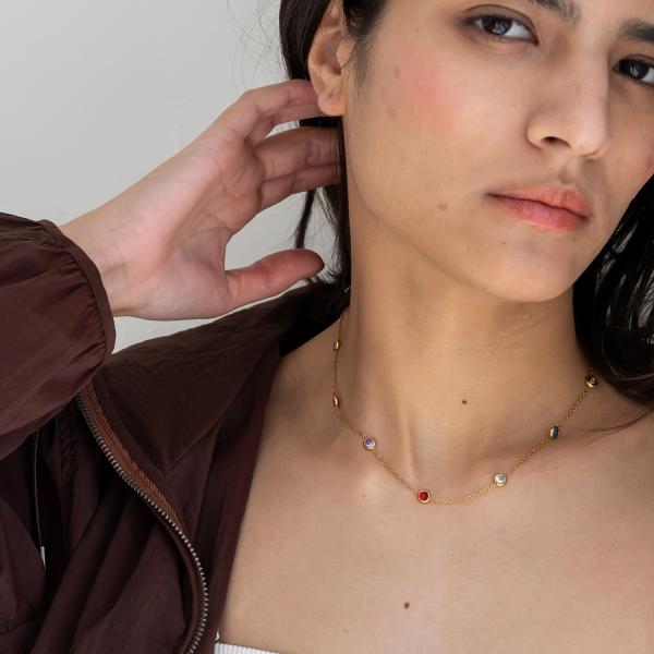 金属アレルギー対応 レディース ネックレス マルチカラーネックレス サージカルステンレス カラフル ビジュー プレゼント 18K カラーストーン キラキラ