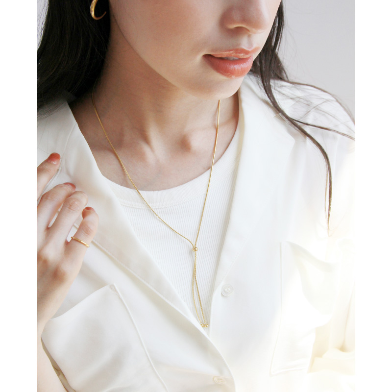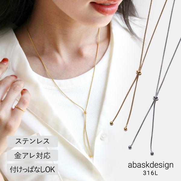 金属アレルギー対応 ネックレス レディース 40代 50代 チェーン ロング ステンレス つけっぱなし 20代 30代 ボールモチーフ スライド ゴールド シルバー