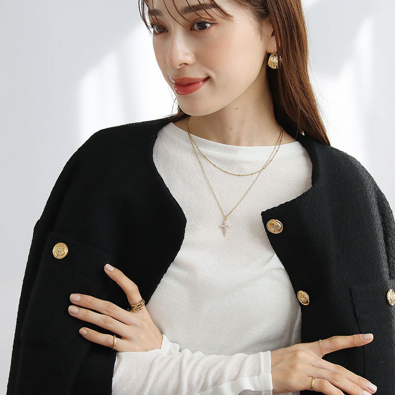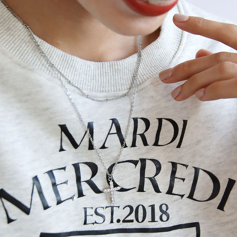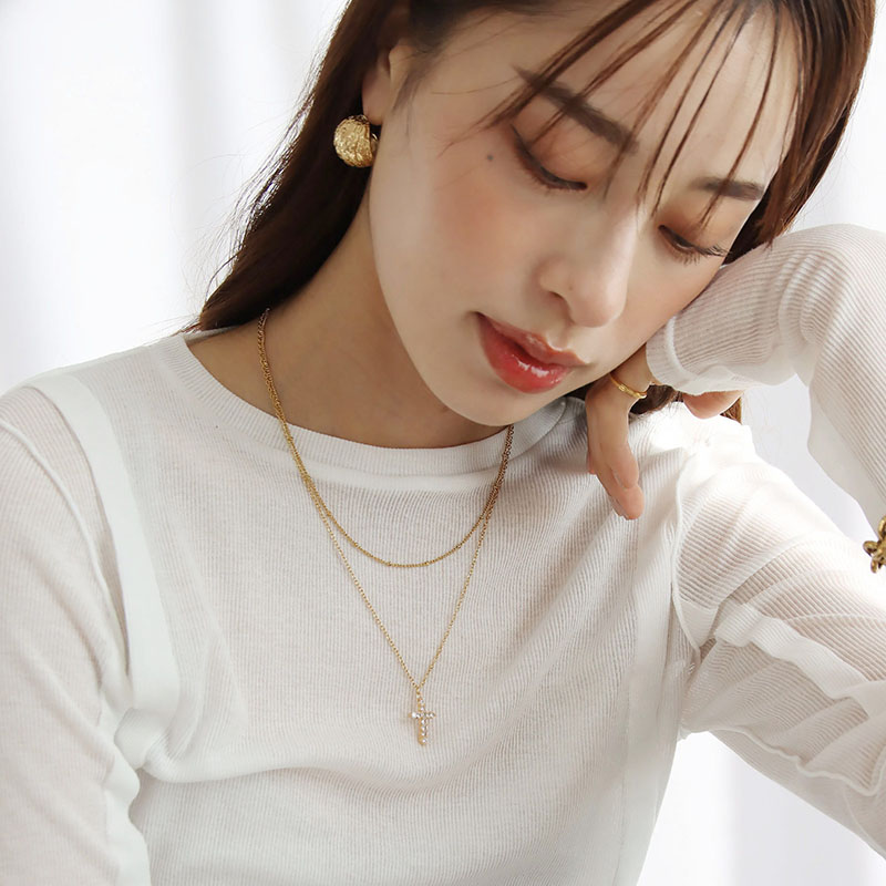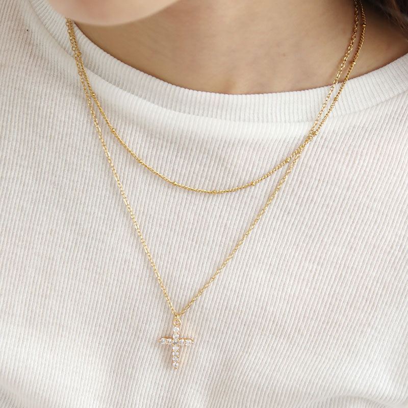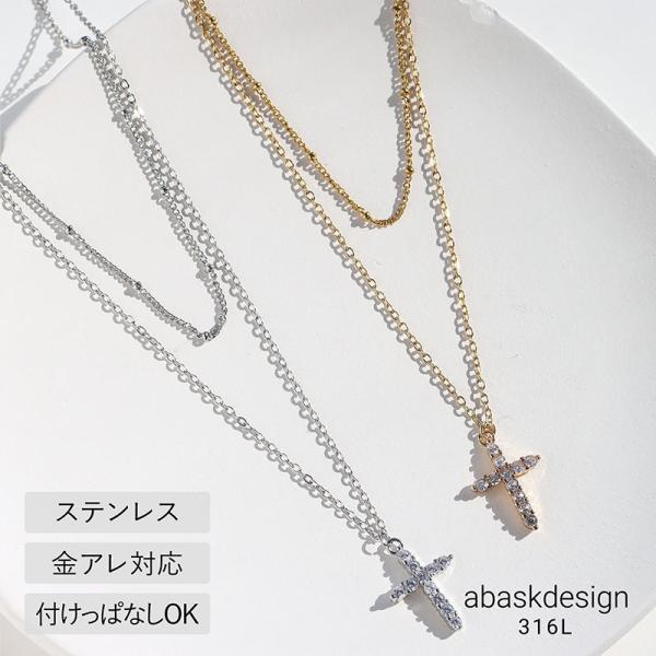 金属アレルギー対応 ネックレス 2連クロスネックレス サージカルステンレス 2連 キュービックジルコニア キラキラ ダイア 20代 30代 40代 50代 女性