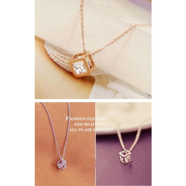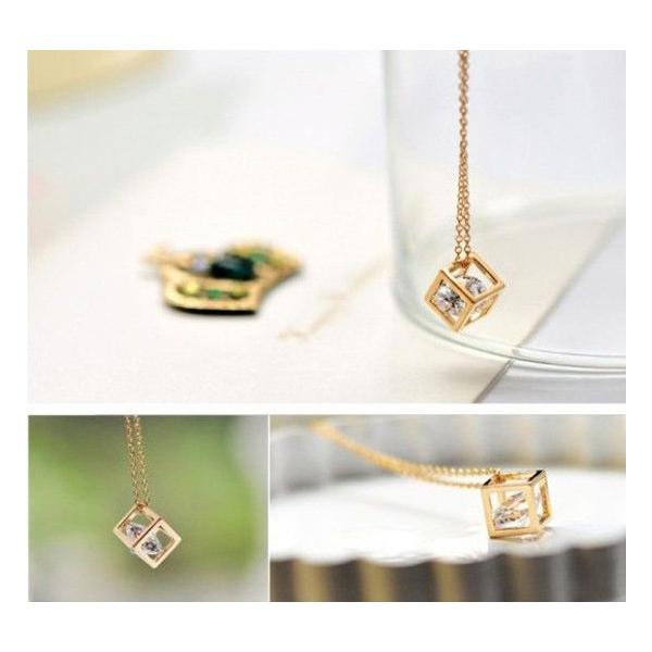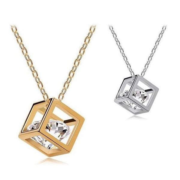 スクエアーネックレス クリスタル キュービックネックレス ペンダント
