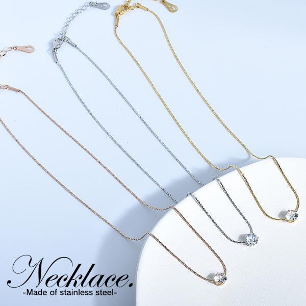 ネックレス ステンレス製 ストーン ジルコニア キュービックジルコニア ステンレス 小さい 小さめ 短め 華奢 おしゃれ 上品 錆びにくい プレゼント レディース