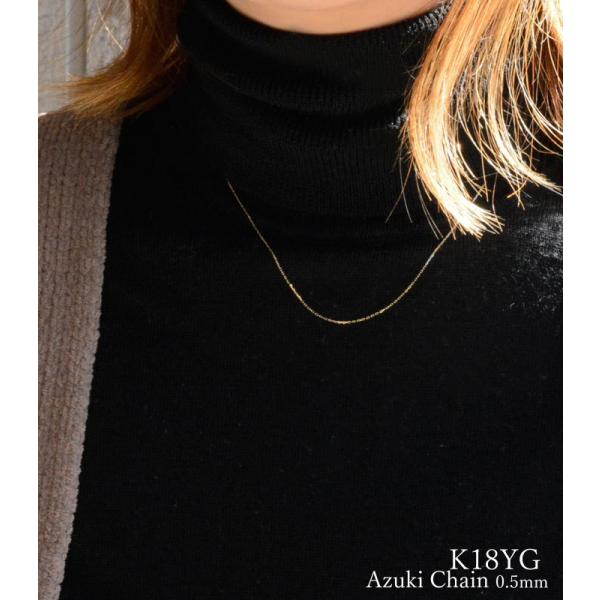 ネックレスチェーン 18金 極細 ネックレス k18 イエローゴールドk18 チェーン レディース 18k 40cm アズキチェーン 小豆 クサリ 0.5mm クリスマス