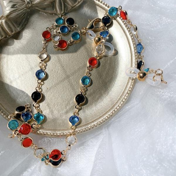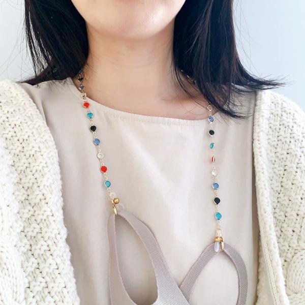 アクセサリー マスクチェーン メガネチェーン ネックレス ストラップ 韓国 お洒落 かわいい 紛失防止 デイリー 大人 カラフルストーンモチーフ