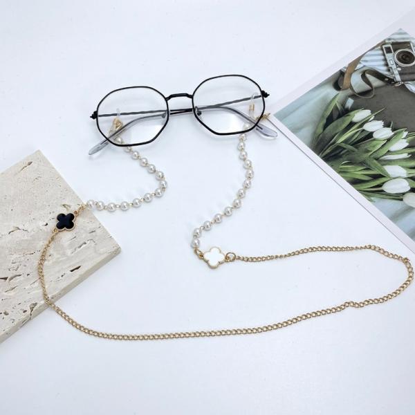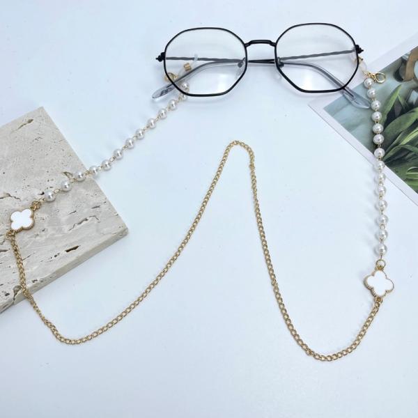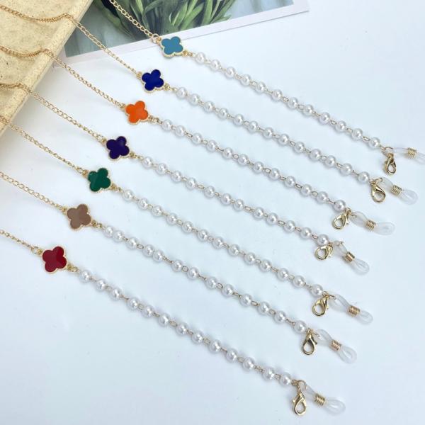 アクセサリー マスクチェーン メガネチェーン ネックレス ストラップ クローバー 四葉 モチーフ パール レディース 韓国 おしゃれ かわいい 紛失防止 ペア