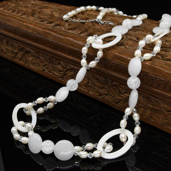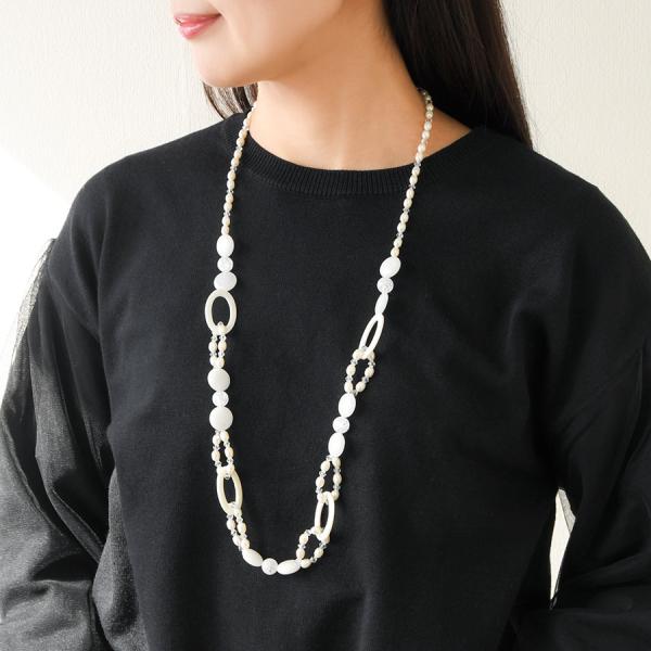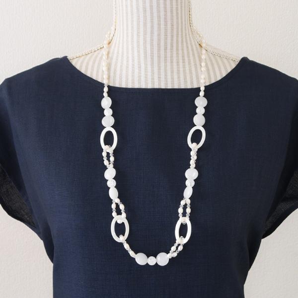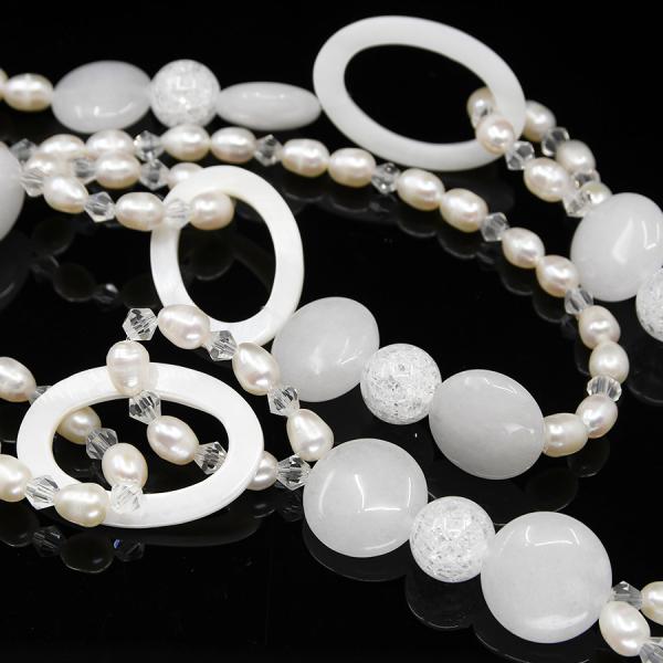 ホワイトカラー ロング ネックレス 真珠 クォーツァイト 水晶 白蝶貝