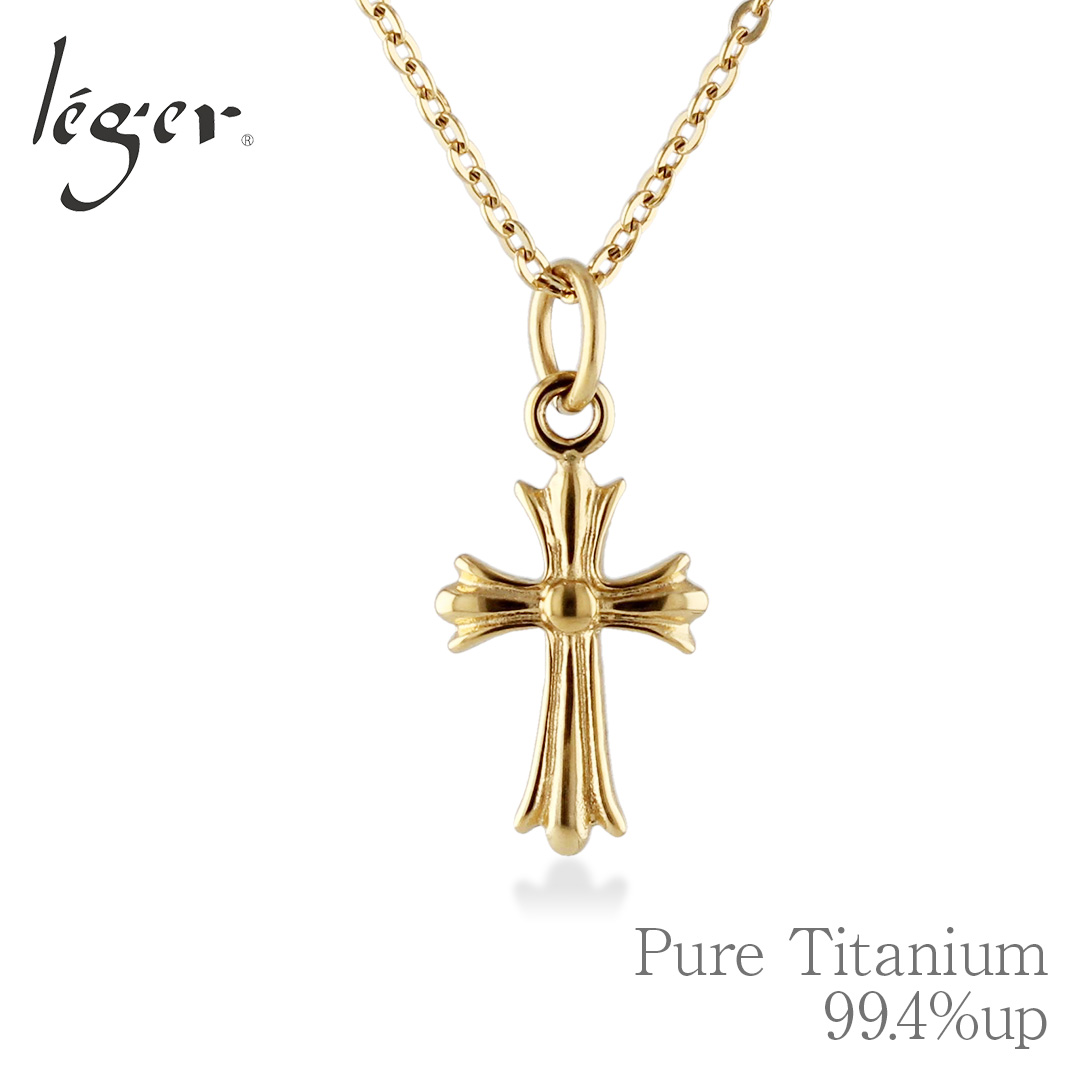 ネックレス 十字架 ゴールド チタン 45cm 小豆 2.0mm幅 チェーン レディース 日本製 金属アレルギー対応 T10GLA45GLF レジエ レジェ leger