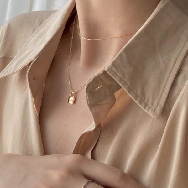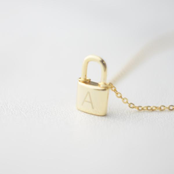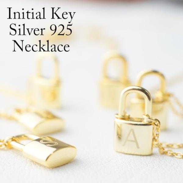 ネックレス レディース イニシャル シルバー925 ロック イニシャル 大人可愛い オフィス 大ぶり カジュアル ロング チェーン 南京錠 スターリングシルバー