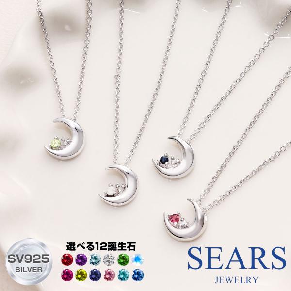 ネックレス レディース シルバー ダイヤモンド 月 ムーン 12誕生石 4月 ダイヤモンドクレッセントムーン 誕生日 プレゼント シアーズ