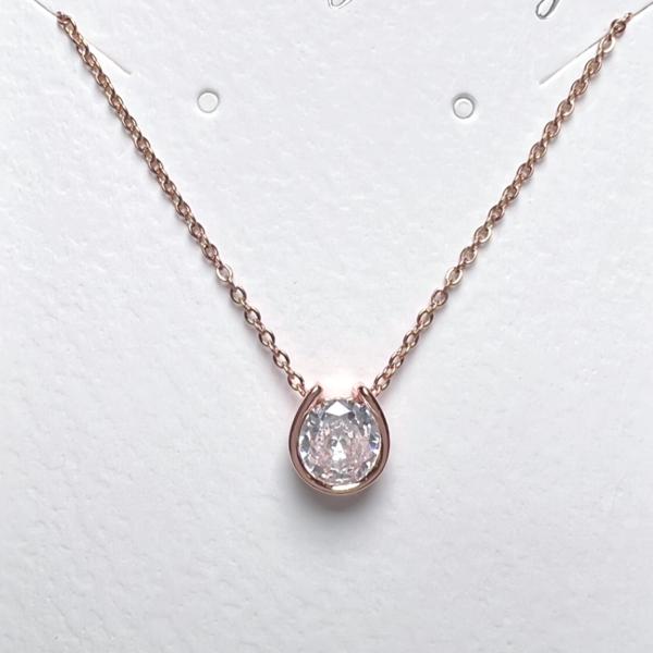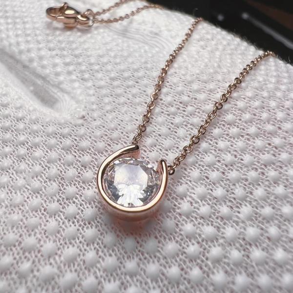 ホースシュー 馬蹄 誕生石ネックレス ステンレスネックレス 40cm+アジャスター5cm 金属アレルギー肌荒れ対応 ピンクゴールド