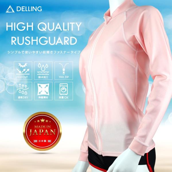 ラッシュガード レディース 日本製 ファスナー付き ジップアップ 長袖 シンプル 無地 ジップ付き ZIP UV対策 水着
