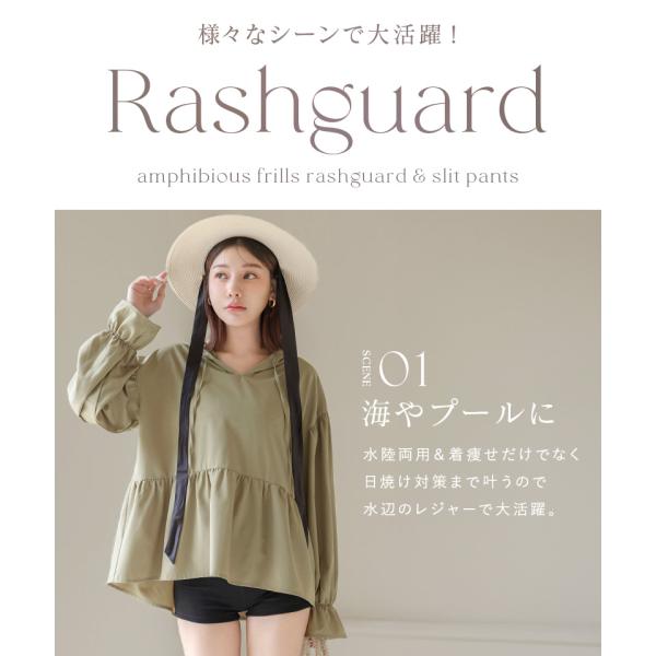 水陸両用フリルラッシュガード 上下セット 日焼け防止 水着 フード付 長袖 速乾 体型カバー 紫外線対策 パーカー レジャー ハイキング ツーハッチ母の日
