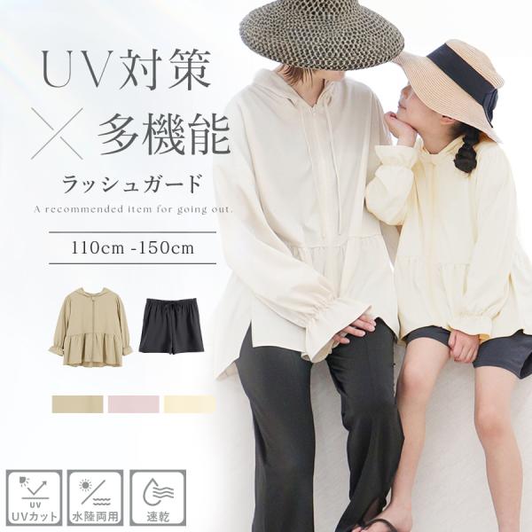 キッズラッシュガード上下セット ママとお揃い 子供用 親子コーデ パーカー UVカット 接触冷感 ツーハッチ