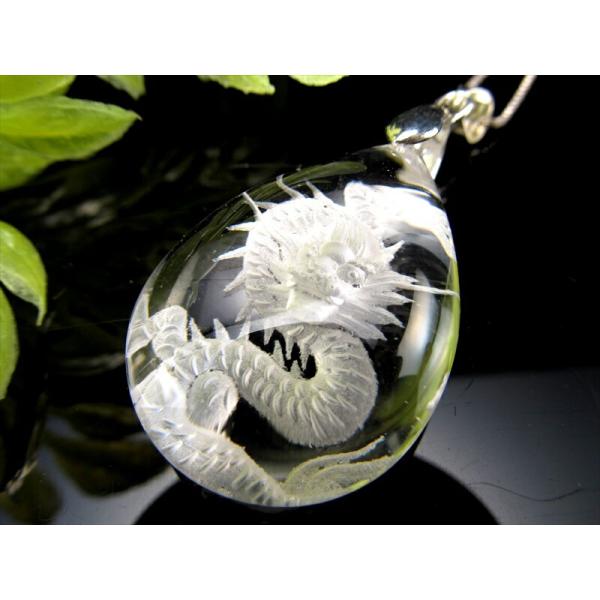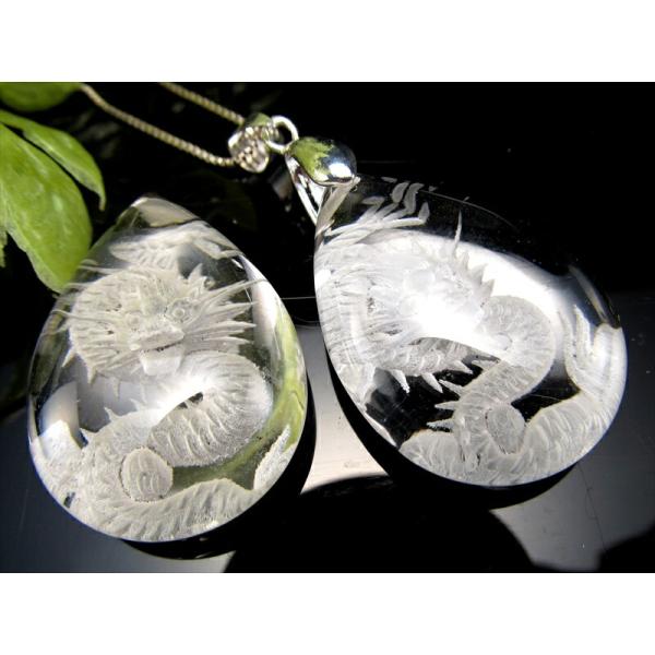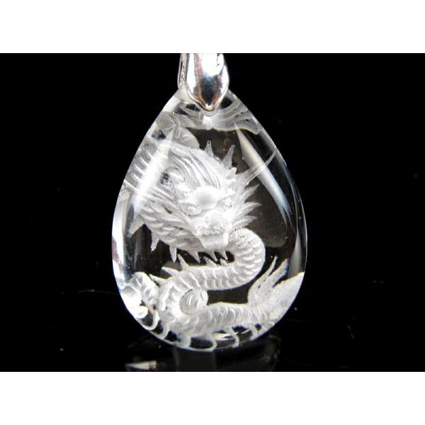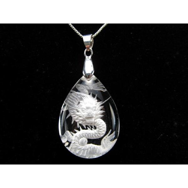 天然水晶 ネックレス 龍彫りペンダントトップ 迫力 繊細手彫り昇り龍 五本爪タイプ ドロップ型トップのトップ 青竜 クリスタルトップ パワーストーン
