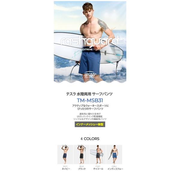 水着 サーフパンツ メンズ 夏 UVカット 速乾 海パン ボードショーツ 海水パンツ 水泳パンツ 水陸両用 スイムウェア インナー付き テスラ TSLA MSB31 爆買