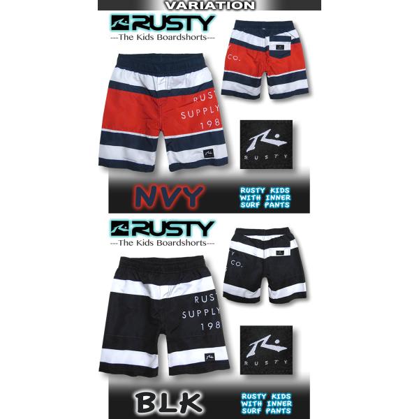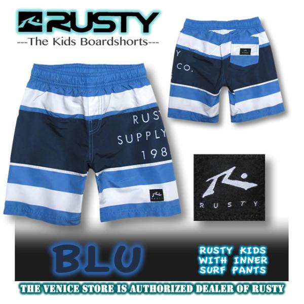 最短翌日配達 サーフパンツ キッズ RUSTY ラスティー サーフブランド インナー付き ボードショーツ トランクス 海パン 水着 男の子 ボーイズ 子供 960401
