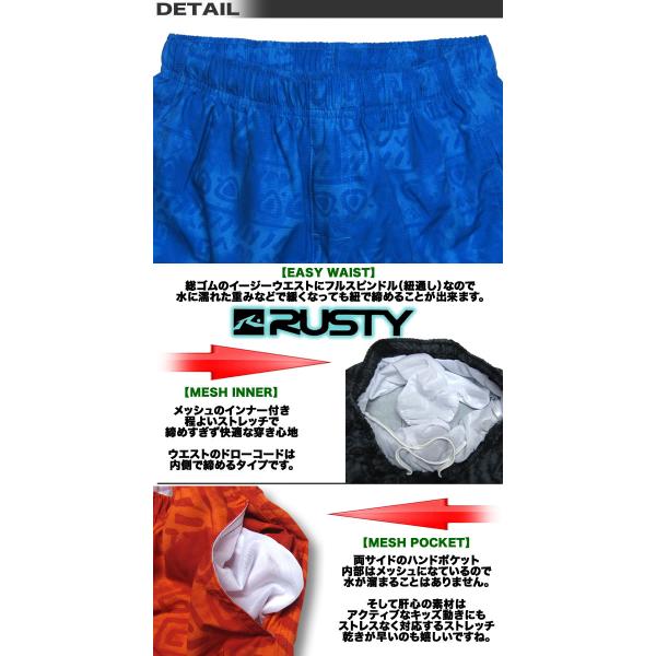 最短翌日配達 サーフパンツ キッズ RUSTY ラスティー サーフブランド インナー付き ボードショーツ トランクス 海パン 水着 男の子 ボーイズ 子供 962408