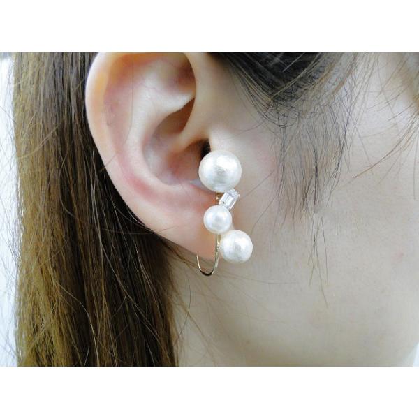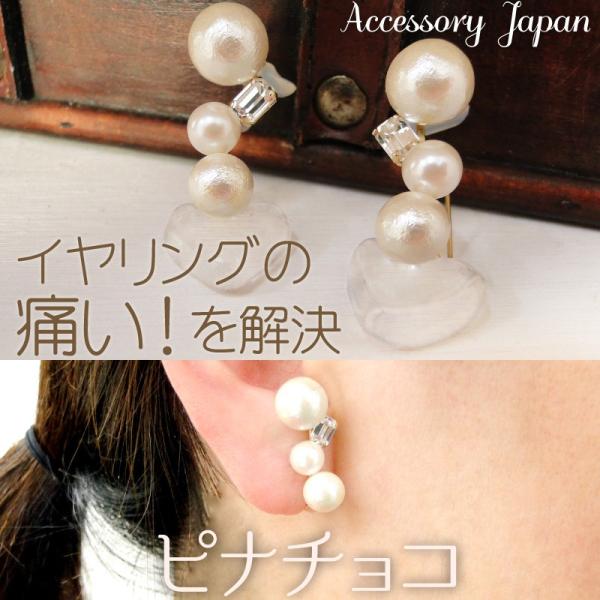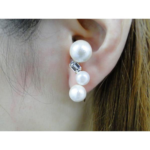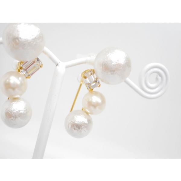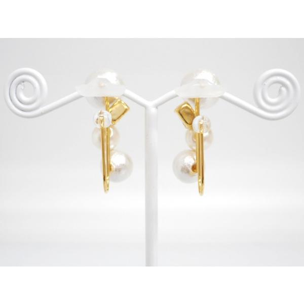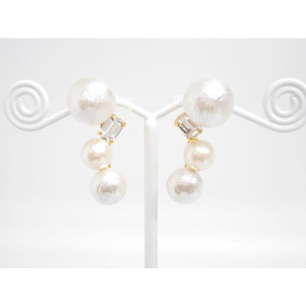 痛くないイヤリング コットンパール クリスタル ゴールド ピナチョコ