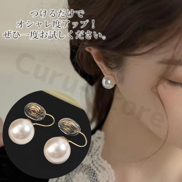 イヤリング レディース 40代 50代 フェイク パール 30代 20代 ピアス見え シリコンカバー 痛くない フープ イヤーカフ