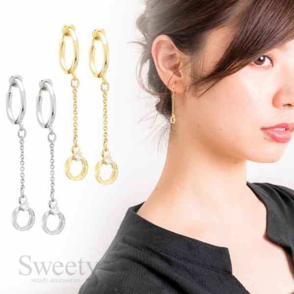 イヤリング チェーン リング 揺らめくパーツが女性らしい耳元を演出してくれる ゴールド