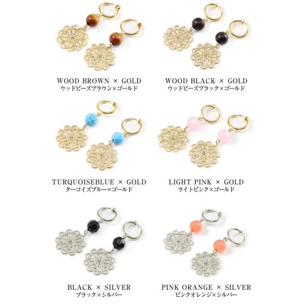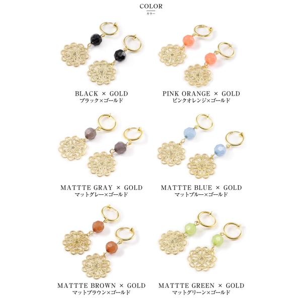 イヤリング 揺れる エスニック 軽い ストーン ゴールド シルバー ブラウン カーキ