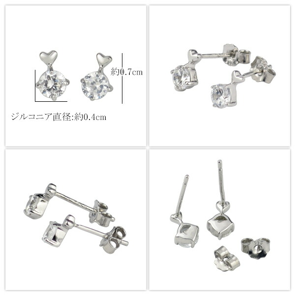 レディース ジルコニアハートシルバーピアス 4mm 2P オシャレ かわいい 可愛い