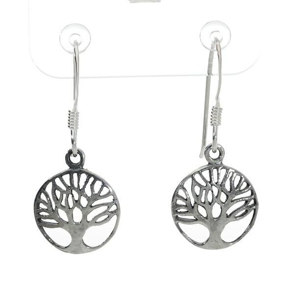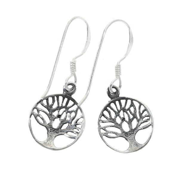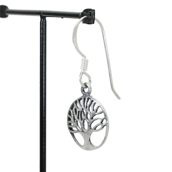 古代神聖幾何学 ツリーオブライフ 透かし 円 11.3mm レリーフ フックピアス 2P 両耳用 シルバー925 ピアス 揺れる 生命の樹 古代 ツリー 木 樹 植物