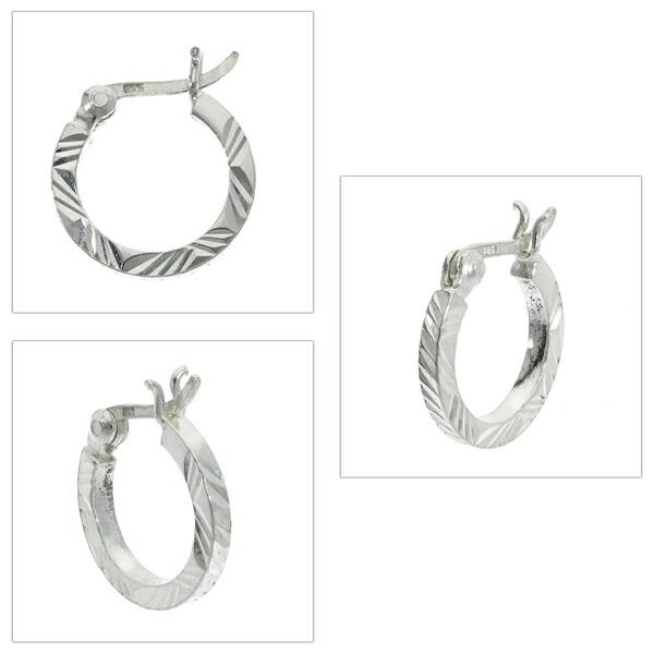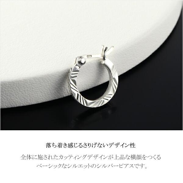 1.8mm幅 14mm 幾何学 カッティング フープピアス 1P 片耳用 シルバー925 ピアス リングピアス 大きめ 大振り 鏡面 模様 さりげない シンプル 大人