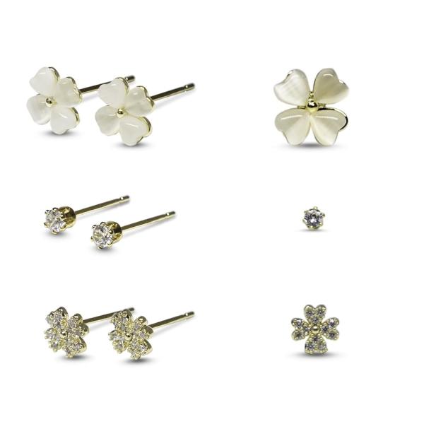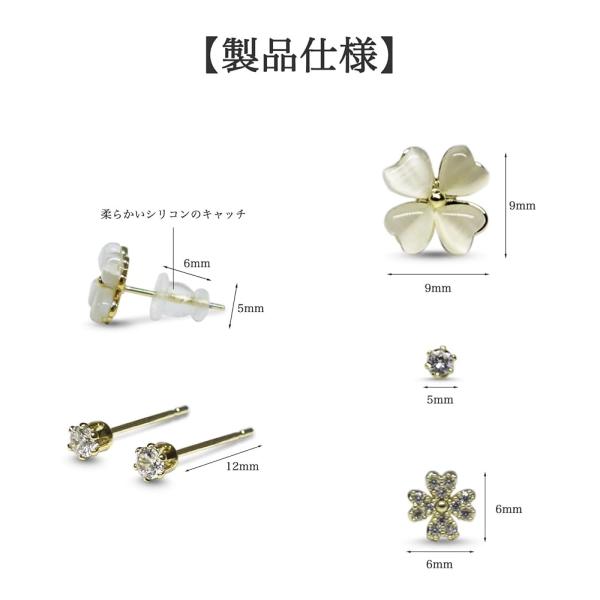 【ピアス】クローバー 高級ジルコニア 金属アレルギー 対応 つけっぱなし 小ぶり シンプル 女性 アクセサリー おしゃれ プレゼント