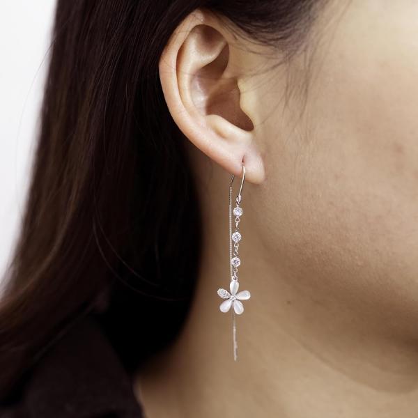 ピアス ロングピアス 揺れる ピアス 金属アレルギー対応 可愛い ロング フラワー 女性 プレゼント 誕生日 ギフトBOX付き シルバー925