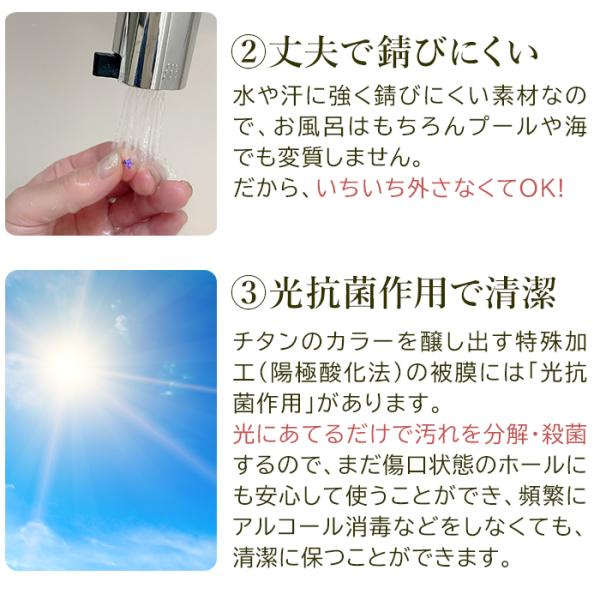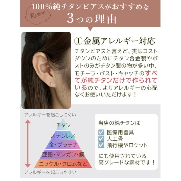 純チタン セカンドピアス アレルギー対応 つけっぱなし ダイヤ ひし形 日本製 軸太0.75mm 長さ10mm 返金保証 医療用 片耳 1個 小さめ かわいい カラフル